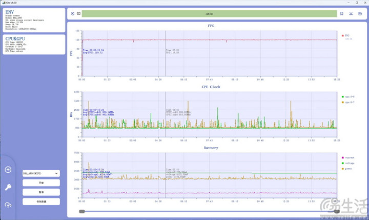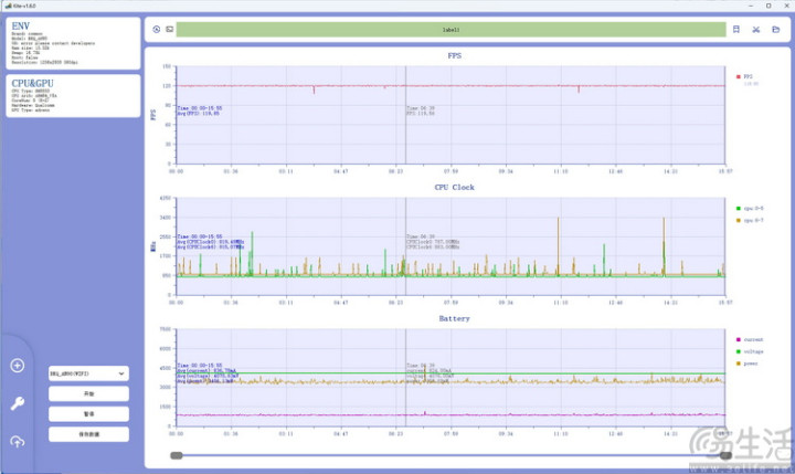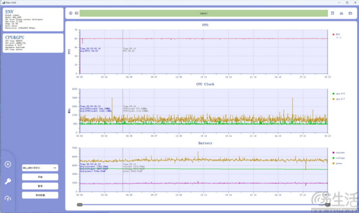 如果换成“大名鼎鼎”的“黄金的时刻”场景呢?此时虽然Magic8 Pro的平均功耗总算是“上来了”,但刚刚超过5W的平均功耗,依然符合本世代“性能向旗舰”该有的能效水平。而且在长达半小时的游戏测试环节中,Magic8 Pro也能稳定地将帧率跑出一条直线。