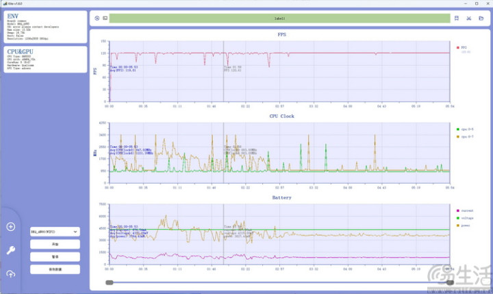 《暗区突围》画质增强+触控增强 平均帧率119.85 平均功耗3406.13mW