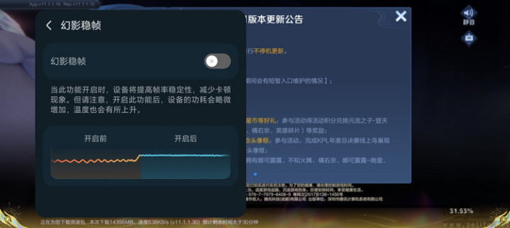 《王者荣耀》幻影稳帧+帧率增强+画质增强 平均帧率120.43 平均功耗2112.42mW