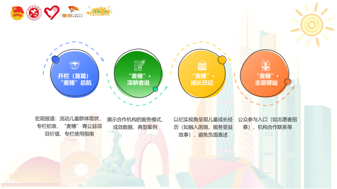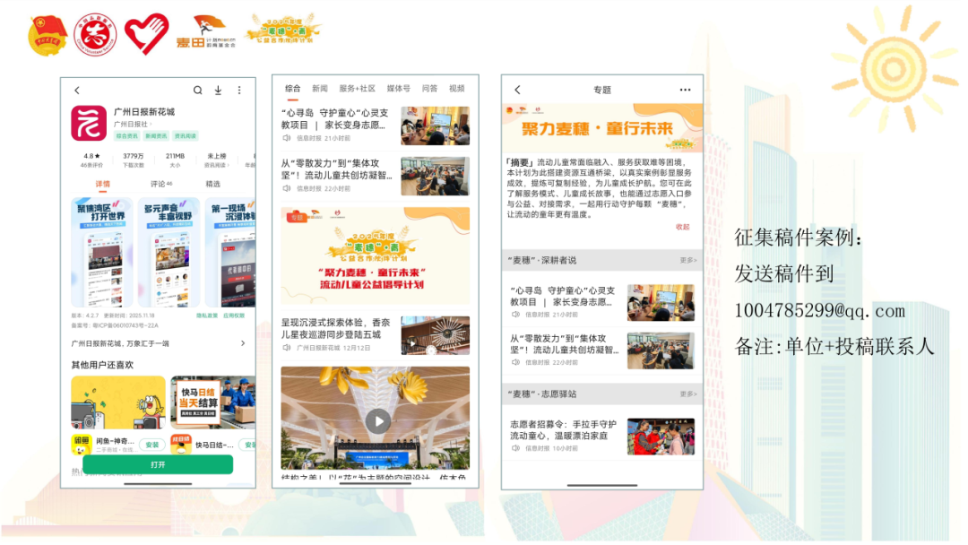 活动现场发布了“聚力麦穗・童行未来”专栏案例征集。该专栏设置“机构服务案例”“儿童成长故事”“公益行动呼吁”三大板块,将打通“流动儿童家庭—公益机构—公众”的信息链路,既为流动儿童家庭提供可触达的服务入口,也为公益机构搭建展示与交流平台,同时向全社会传递流动儿童群体的真实需求与成长潜力。