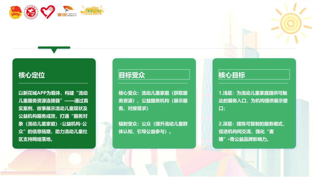 自 2023 年起,“麦穗”・青公益合作伙伴计划应运而生,通过资金支持、搭建平台、举办公益研习社、督导培训等方式多维度支持合作伙伴深化项目成效,从个人成长、社区融合、社会倡导等多个层面开展城中村流动儿童及青少年相关服务。