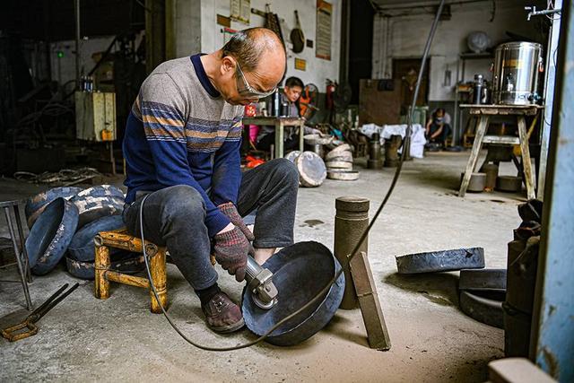 技艺工人制作十音铜锣