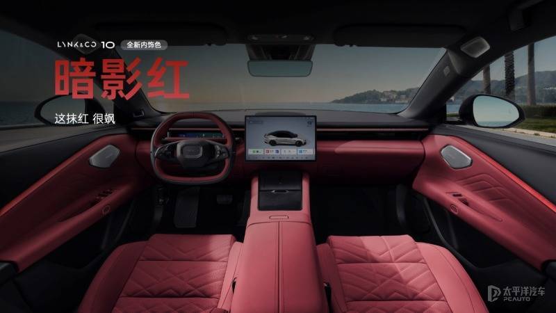 内饰方面,领克10+和领克10采用家族式简约风格设计,配备15.4英寸悬浮式大屏和12.7英寸液晶仪表,方向盘采用双幅D型设计搭配电子怀挡式换挡,其中领克10还新增“暗影红”内色颜色。